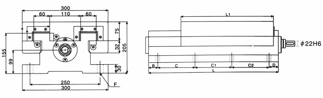 | 型號 | L1 | B | C | C1 | C2 | D | L | F | 軸徑 Shaft diameter |